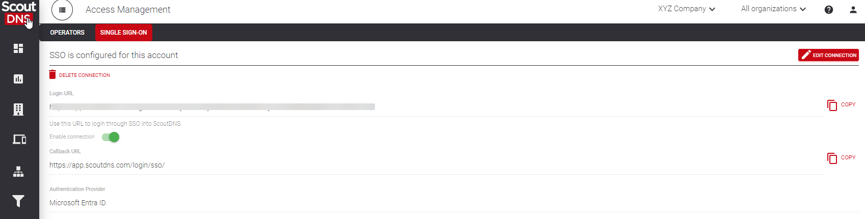 You can now copy the unique login URL that Entra ID will use to access ScoutDNS.